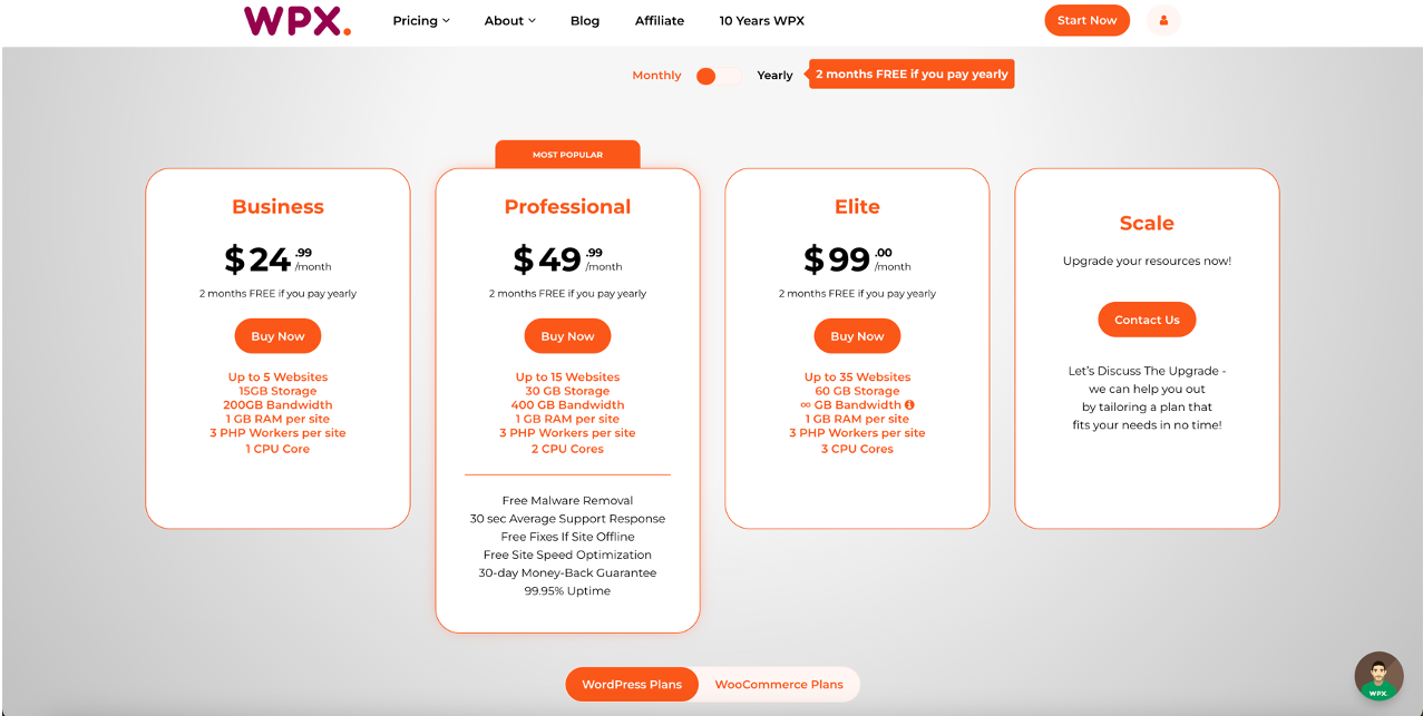 이점 때문에 저는 여러분들께 WPX.서비스를 추천 드립니다. 제가 아래에 보이는 그림에서 위쪽의 'Monthly'와 'Yearly'를 잘못 선택했었습니다.